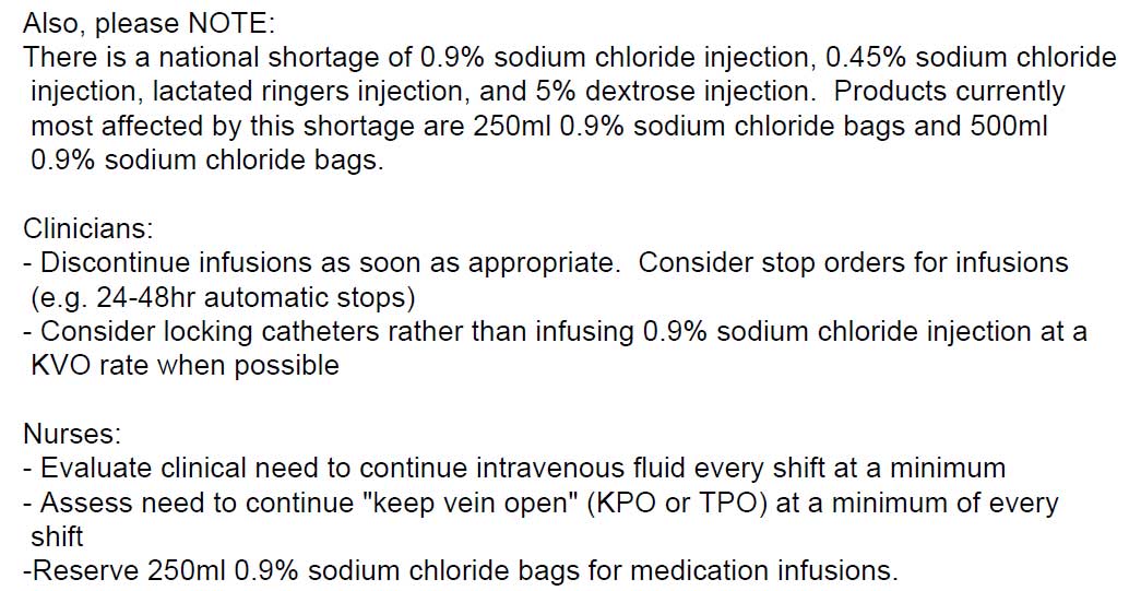 And we may wish to do that fast.  Normal saline could be the next vital supply to dry up.